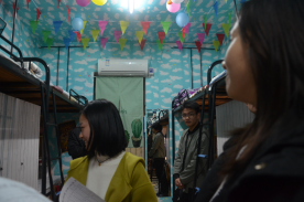 晚七点,所有老师在南苑学生宿舍18A楼下集合完毕,首先前往女生宿舍检查。同学们热情迎接老师。老师们仔细检查门框、洗漱区等各处卫生死角及重点区域,指出存在的问题;与同学们交谈,了解她们的生活情况;对文化建设较好的宿舍提出表扬。女寝检查结束后,老师们一齐前往男寝参观交流。男生宿舍相较于女生宿舍的文静清新,更显活泼与动感。老师与男生们交流学习、生活状况,并对他们进行了安全知识的教育,氛围轻松,场面和谐,时不时爆发阵阵欢声笑语。在亲切的交流中向学生进行了宿舍安全文明教育。