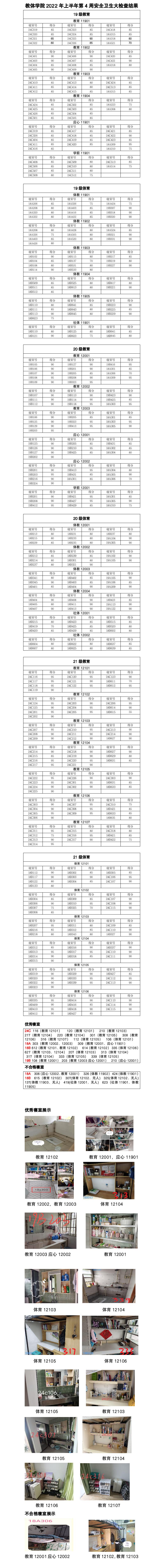 教体学院2022年上半年第4周安全卫生大检查结果