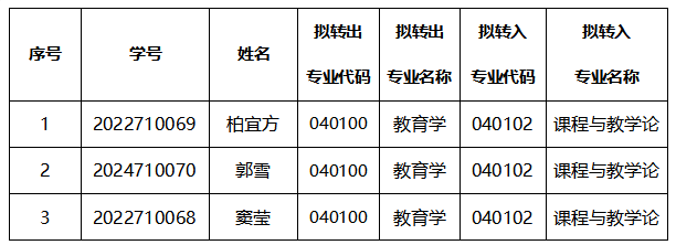根据学校《关于做好2024-2025学年第一学期一级学科和同一专业学位类别内转专业工作的通知》要求,柏宜方等3名研究生自愿申请由一级学科调整到二级学科,经学院审查,现将拟调整研究生名单进行公示。