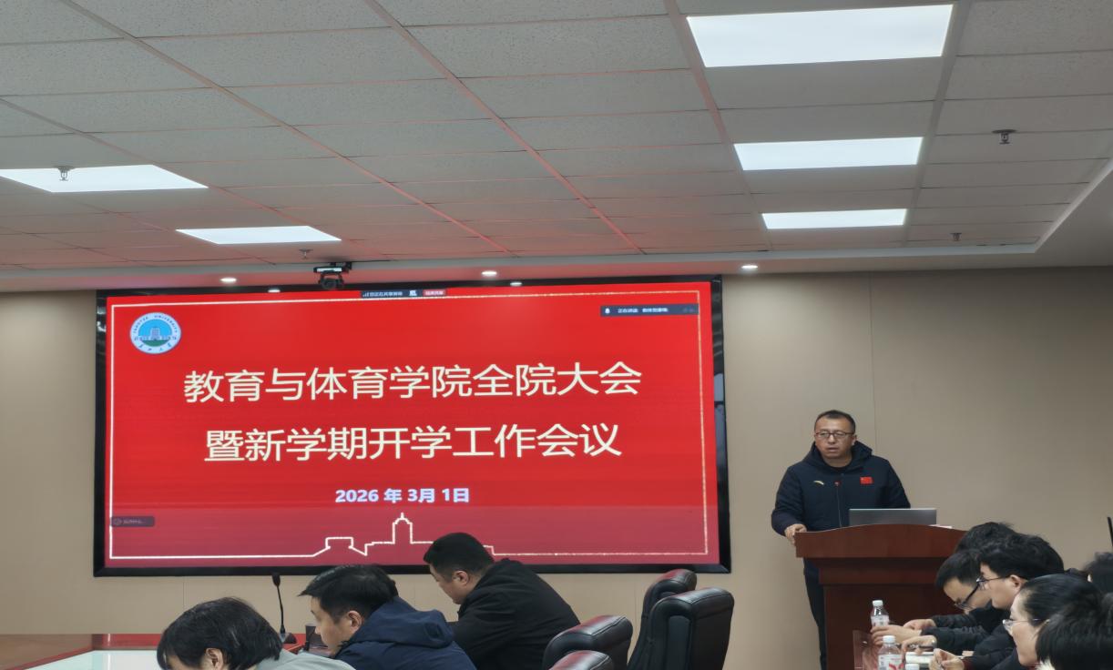 【通讯员 何诗瑶】春潮涌动启新程, 奋楫扬帆正当时。为深入学习贯彻学校新学期会议精神, 统筹部署学院2026年春季学期各项重点工作, 凝聚全院教职工奋进力量, 3月1日上午9时, 教育与体育学院在文科楼905会议室召开全院大会暨新学期开学工作会议。学院党委书记于永伟主持会议,全院教职工参加会议。