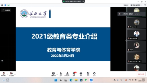 (通讯员/张璟妍)为了让2021级学生更好地了解学前教育、应用心理学和教育学专业内涵,做好大一教育类学生的专业分流,3月24日晚6:30,学院以腾讯会议的形式,面向学院教育学类大一本科生举办了2021级教育类专业介绍宣讲会,学院副院长张艳红老师、心理学系主任朱晓伟老师、学前教育系系主任徐发秀老师、教育学系系主任薛振伟老师,辅导员吴钐老师以及2021级教育类全体学生参加了此次宣讲会。宣讲会由副院长张艳红老师主持。