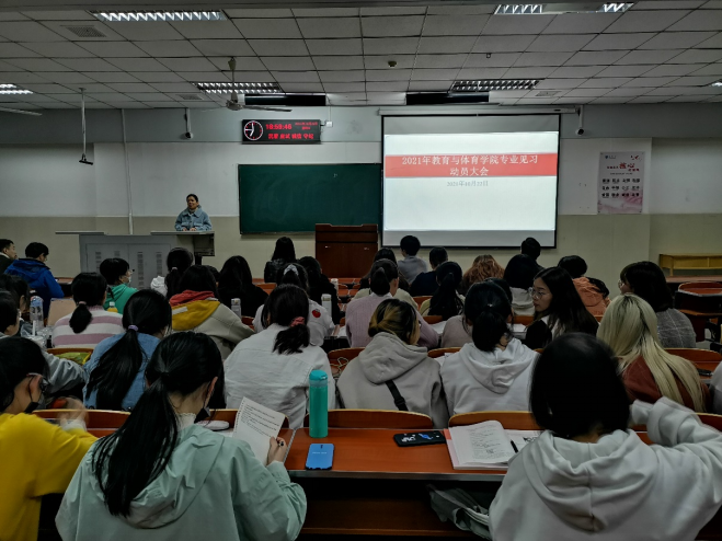 (通讯员:杨华敏)10月22日晚七点,2021年教育与体育学院专业见习动员大会在12教404教室举行,副院长张艳红、心理系主任朱晓伟、学前系主任徐发秀、特邀嘉宾李宇浪及其他老师参与了本次会议,我院2019级全体学生均按时到会。