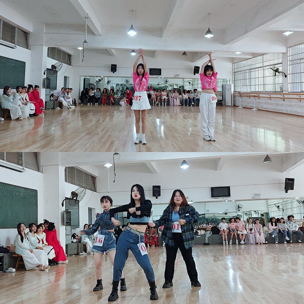5月20日,舞蹈考核在南苑舞蹈教室举行,涌现出了《百舞惊鸿》、《霍元甲》、《和离书》、《Wa Da Da》以及《Say My Name+Gee》等优秀作品,这些作品有的优雅端庄,有的动感欢快,充分展现了同学们良好的舞台风貌。