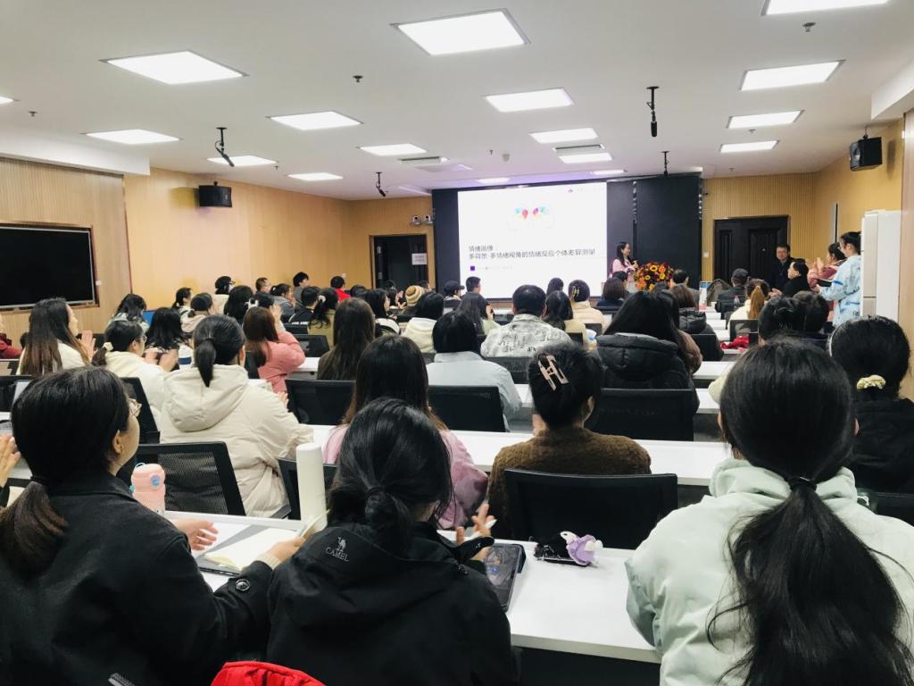 继师生座谈之后,当日晚间张教授又在文科楼910报告厅作了一场主题为“情绪画像:多背景—多情绪视角的情绪反应个体差异测量”的学术报告。我院教师张艳红教授、周婷博士、郑红涛老师、王文静副教授、朱晓伟副教授、严磊副教授、胡修银副教授、甘雄副教授、连帅磊副教授、卢忠耀博士、冯雪博士以及校内外100余名师生参加了此次报告。报告会由院长张艳红教授主持。