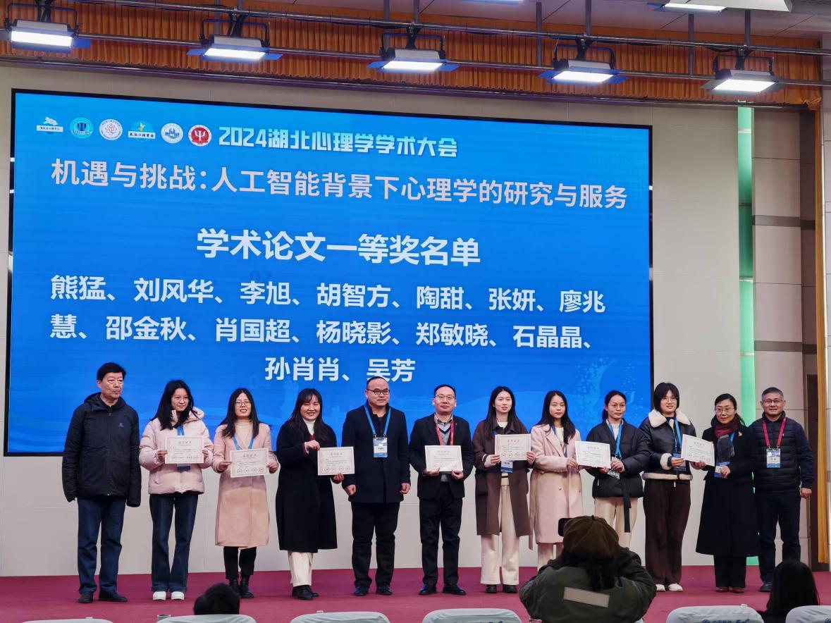 (通讯员 饶仕杰 熊猛)12月6日至8日,以“机遇与挑战:人工智能背景下心理学的研究与服务”为主题的2024湖北心理学学术大会在孝感成功举办。本次大会由湖北省心理学会、湖北省社会心理学会、湖北省心理卫生协会、武汉心理学会联合主办,湖北工程学院承办,来自全国高校、科研院所、中小学、医院和相关社会心理服务机构等单位的600余名代表参加会议。我院副院长熊猛教授,张文渊副教授、朱晓伟副教授、冯雪博士以及心理学专业研究生共5人作为正式代表参加了此次盛会。熊猛教授代表湖北省社会心理学会在主会场作大会特邀报告,作为荆州市心理学会负责人组织并主持专题论坛《人工智能时代心理护理模式探索与实践》,并荣获“2024湖北心理学学术大会”优秀学术论文一等奖。