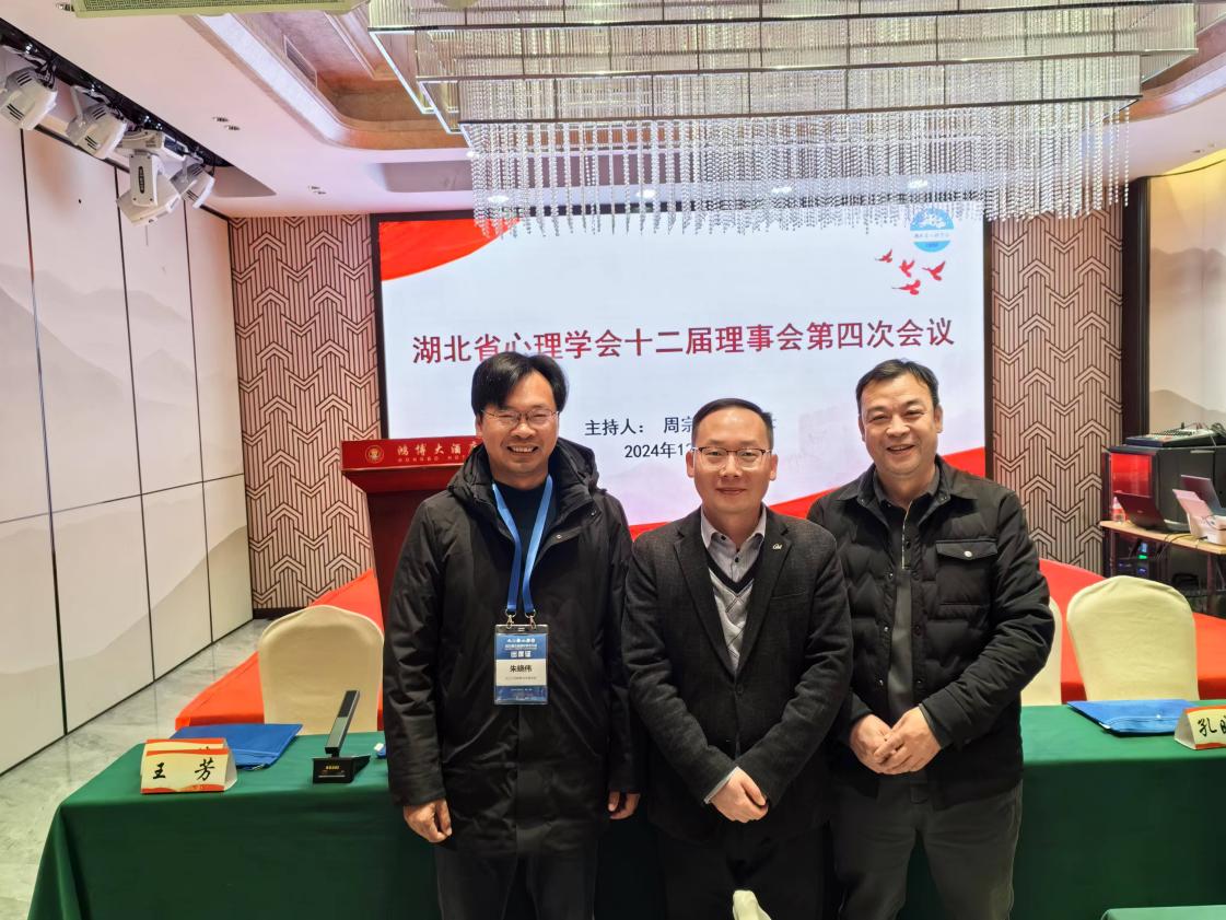 12月6日晚,湖北省心理学会召开十二届理事会第四次会议,我院熊猛教授、张文渊副教授作为常务理事,朱晓伟副教授作为监事应邀参加了会议。熊猛教授在会上介绍了荆州市心理学会一年来的主要工作和长江大学心理学科的发展情况,受到与会理事的高度赞赏。