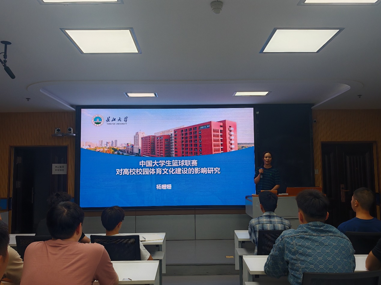 杨姗姗老师以“中国大学生篮球联赛对高校校园体育文化建设的影响研究”为主题开展分享。杨老师先从中国大学生篮球联赛的发展历程开始介绍,着重对联赛发展过程中取得的成绩进行了阐述。并结合实际案例对CUBAL联赛对高校校园体育文化的建设进行了分析。杨老师认为中国大学生篮球联赛对推动高校校园体育文化全面建设,实现健康中国战略起到了重要作用。