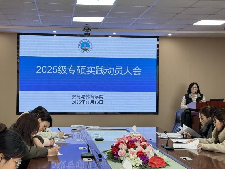 (通讯员:张立华)2025年11月13日上午,长江大学教育与体育学院2025级专硕实践动员大会在文科大楼905会议室举行。本次大会由学院教科研办主任卢小琴老师主持,2025级全体专硕研究生共计60余人参加了本次大会。