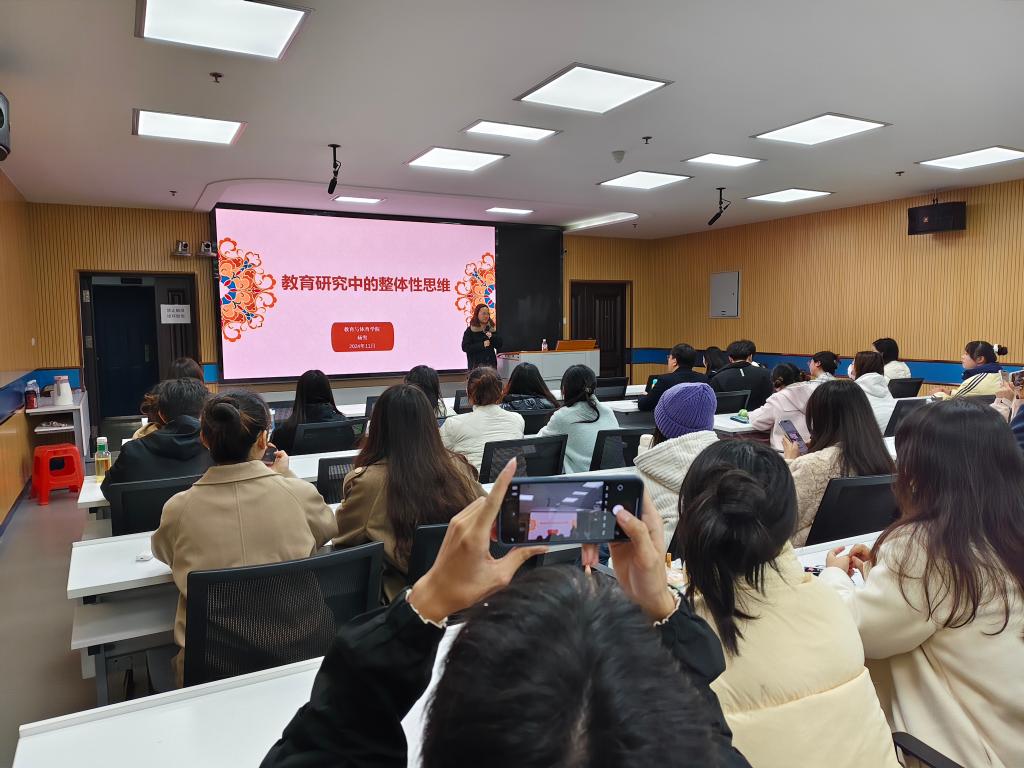 最后,与会同学就“如何在实际论文写作中灵活运用整体思维”展开了热烈讨论,杨雪博士告诉同学们需要根据研究的具体问题和背景来选择合适的方法,从多个角度对研究进行审视和评估,并强调在教育研究中,整体性思维是一种非常重要的思维方式,它不仅能够帮助同学们更全面地理解问题,还能够引导同学们采用更加科学严谨的方法进行研究和论证。这也激励我院教育专业研究生在未来学习中不断延伸和探索新的理论和方法,以推动教育研究的不断进步和向前发展。(审核 熊猛 编辑 卢小琴 李婉晴)
