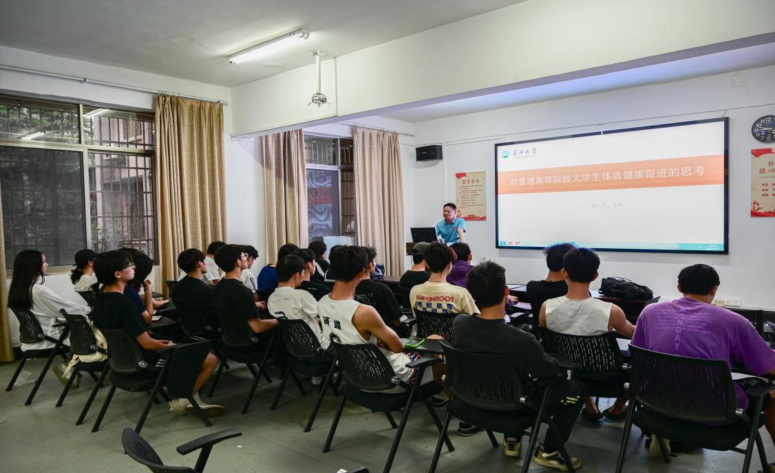 (通讯员:成欣财)2025年5月23日晚19点,我院“求实导师学术沙龙”在五号教学楼203举行,主讲人李明副教授以“对普通高等院校大学生体质健康促进的思考”为主题开展讲座。长江大学教育与体育学院部分本科生参加了此次活动。