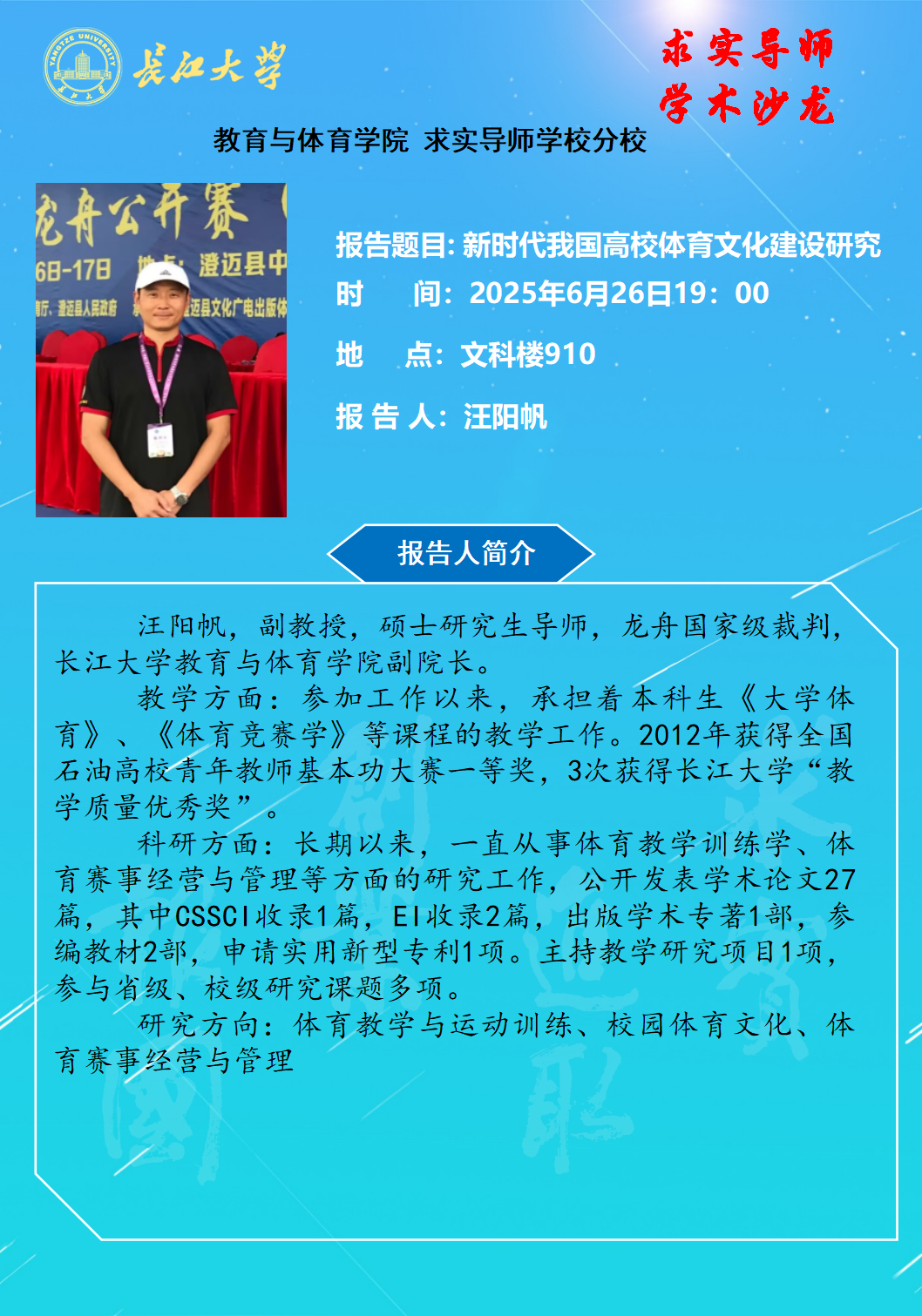 教育与体育学院2024-2025学年“求实导师学术沙龙”系列讲座(樊翠红 副教授)