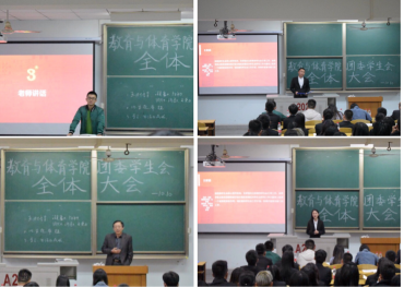 (陈博文/文 何怡润/摄)10月10日下午四点,教育与体育学院第一届学生会全体大会在13号教学楼A区202号教室隆重举行。大会由教育与体育学院学生会主席刘鹏主持,团委书记文晓武老师,辅导员任雯婷老师、顾志辉老师、许静婷老师、彭军军老师、汪露老师,班主任代表潘友刚老师任嘉宾出席。全体学生会成员均着正装参与此次会议。