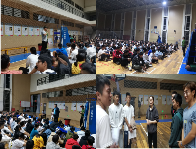 10月11日晚上7点,教育与体育学院体育类20级新生在南苑体育馆召开了第一次全员大会,班主任杨姗姗老师,覃俊平老师,张如江老师以及龙舟队主教练刘瀑老师,舞龙舞狮队主教练薛凌老师出席了本次大会,本次大会由年级辅导员文晓武老师全程主持。