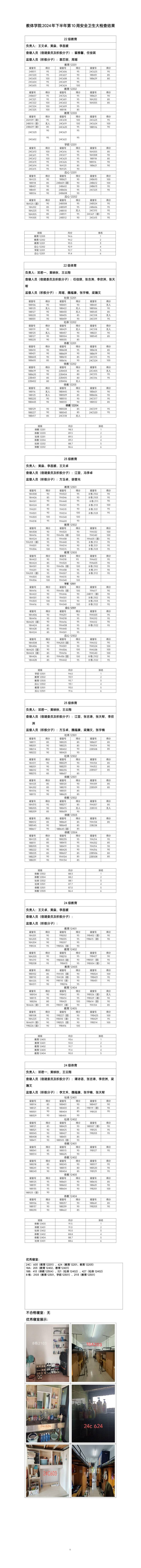 教育与体育学院2024年下半年第九周安全卫生大检查结果