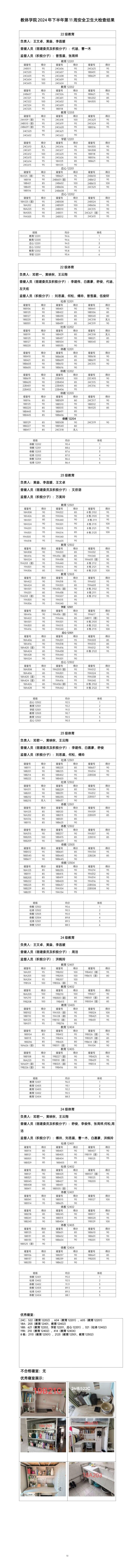 教育与体育学院2024年下半年第十一周安全卫生大检查结果