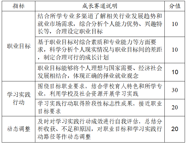 (一)成长赛道。参赛对象为普通本科一、二、三年级学生,考察其职业发展规划的科学性和围绕实现职业目标的成长过程,通过学习实践持续提升职业目标达成度,增强综合素质和能力。