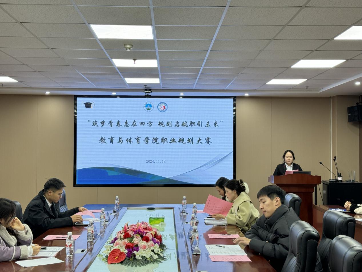 【通讯员 袁宝宏 谷世家 王雅妮】为促进大学生对自身职业方向的认知和规划,增强职业竞争力,鼓励个人不断学习和持续成长。11月18日下午18时许,教育与体育学院(以下简称教体学院)在文科大楼910举行了职业生涯规划大赛院赛,本次比赛由学生会主席团成员瞿廷婷主持。参加大赛有党委副书记何可可、团委书记任雯婷、辅导员喻泽坤、陈佳琳、兼职辅导员文艺萌、金楚悦、张震洋、学生会主席团代表何烨以及教体学院部分同学。
