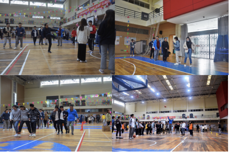 活动伊始,学院党委高明成书记“五四精神·传承有我”为主题做了简单隆重的开幕致辞,他号召全院广大同学大力弘扬五四青年精神,传承爱国主义情怀,张相乐院长宣布活动正式开始张相乐院长、高明成书记、李则俊副书记也参与其中,与同学们互动娱乐,在定点投篮与踢毽子项目上,张相乐院长、李则俊副书记不失当年风采,顺利完成活动,随后又在中与同学们组队,团结合作赢得了小组第一。