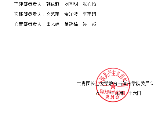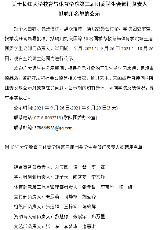 关于长江大学教育与体育学院第三届团委学生会部门负责人拟聘用名单的公示