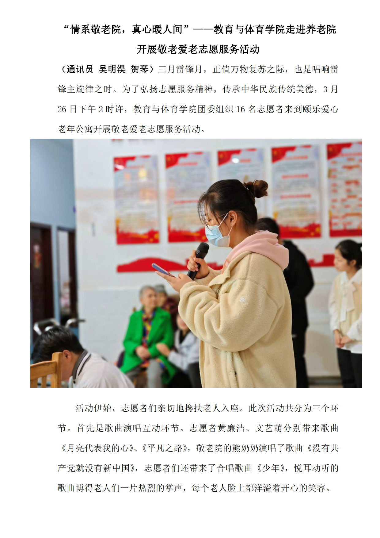 “情系敬老院,真心暖人间”——教育与体育学院走进养老院开展敬老爱老志愿服务活动