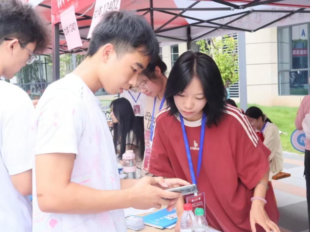 志愿者们提前到达现场布置座椅,摆放信息展板,为迎新工作开展打下良好基础。他们始终以饱满的热情和专业的服务态度,迎接来自五湖四海的新同学,耐心解答每一个问题,为家长送上茶水,让新生感受到学院的关怀。从信息核验到路线指引,再到行李搬运,志愿者与班助密切配合,使迎新工作高效开展。