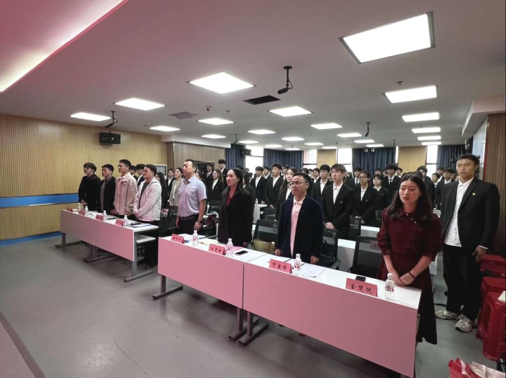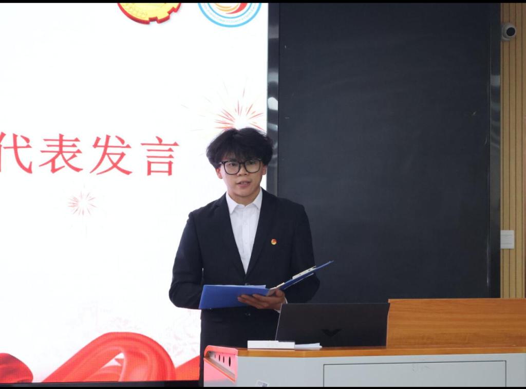 大会伊始,全体肃立,奏唱国歌。紧接着,何书记发表讲话,他对学生会过去的成绩给予肯定,同时也对新一届学生会提出了殷切期望。何书记表示,作为学生干部应该勇于担当、严于律己,提高解决问题的能力并培养大局观念,提升思想意识,为同学们树立先进榜样,团结协作、守正创新,发挥出“1+1>2”的效果,共同铸就新的辉煌。随后由何书记为学生会授旗,这两面旗帜不仅代表荣誉,更是责任的象征,承载着学院领导和老师对学生会的信任与期望,激励着同学们在未来的学习与工作中勇往直前、再创佳绩。