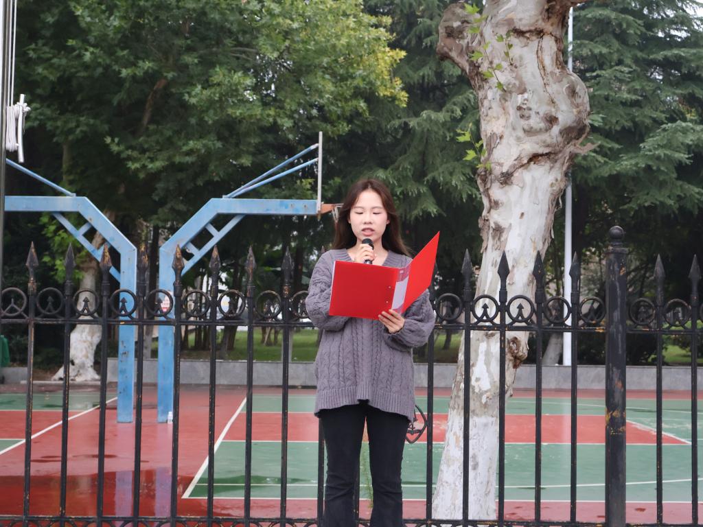 随后,2023级陈欣颖作国旗下讲话,号召新生将抗战精神转化为“勤学、实践、协作、奉献”的具体行动,珍惜大学时光,明确使命,努力成为有志气、有骨气、有底气的青年,践行“强国一代,奋斗有我”的誓言。