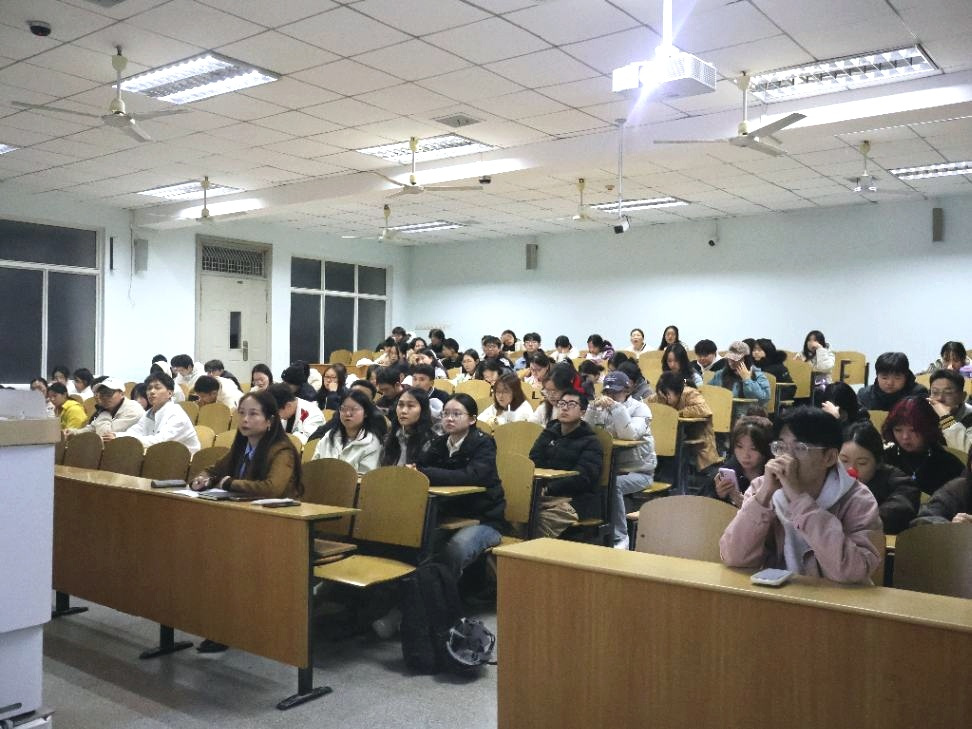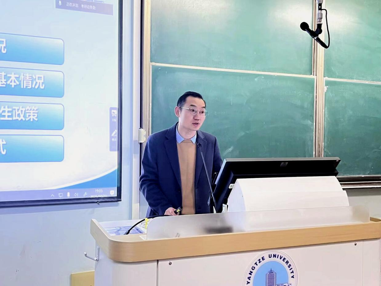 紧接着,严磊围绕“知己知彼,百战不殆”这一核心主题展开宣讲。他首先着重指出我院师资力量雄厚,近10年来学科建设成果斐然,随后详细列举了各学科的考试参考书目及研究生福利政策,积极鼓励学子们报考本校,借助学院优质资源,为考研及未来职业发展奠定坚实基础。
