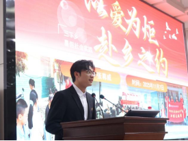 会上,力博支教服务团代表张尊威结合亲身经历,分享了团队在石首乡村支教的双向奔赴故事,为现场新生带来深刻启迪。首先,他详细阐述了团队支教之旅的活动历程。2025年7月,张尊威同学与团队成员前往石首市久合垸乡西江村,在村委会的协助下开启了为期十多天的支教之旅。支教期间,团队以3至14岁各年龄段学生为主体,设计了生活趣味、文化熏陶、折纸手工、律动舞蹈四类贴合实际的特色课程,旨在加强课程与中华优秀传统文化的融合,在传统与现代交互学习中成长。
