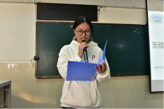 【通讯员 高思远 杨雅月/文 唐鑫/摄】为了普及献血知识,弘扬青春奉献担当,11月26日和27日,教育与体育学院在12教104教室举办无偿献血宣讲活动。本次活动由吴子轩主持,兼职辅导员余洋波老师以及教育与体育学院全体学生参与。