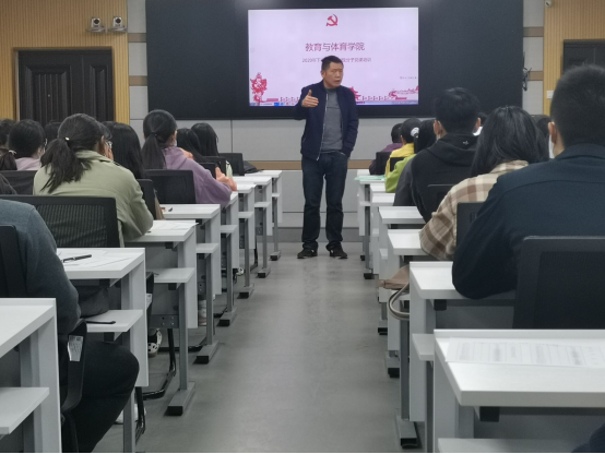 (通讯员 王利方)为进一步提高入党积极分子对马克思主义的信仰,对共产主义和社会主义的信念,对党和人民的忠诚,11月5日下午7时,教育与体育学院2020年下半年入党积极分子党课培训在文科大楼910教室顺利召开。培训由教育与体育学院组织员胡绍林老师主讲,本科生第一党支部书记王利方老师主持,80名新认定的入党积极分子全员参与。
