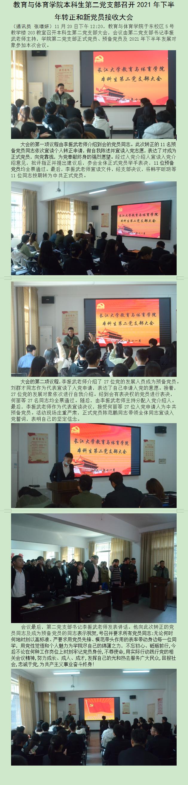 教育与体育学院本科生第二党支部召开2021年下半年转正和新党员接收大会