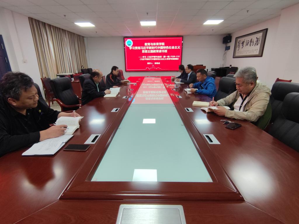 5月5日下午2:30,教育与体育学院领导班子学习贯彻习近平新时代中国特色社会主义思想主题教育读书班第四次集体学习在文科大楼905会议室开展。