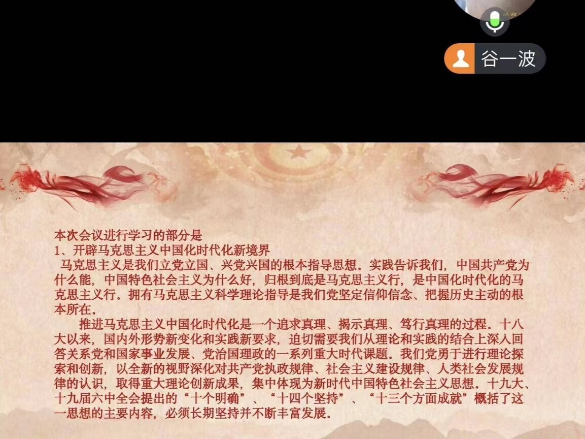 (通讯员 倪梓曦)2023年12月15日至30日,教育与体育学院全体研究生开展了十二月政治理论学习。本次政治理论学习各班分别采用线上线下结合的方式,由团支书进行组织学习,丰富了学习的形式。本次学习目的是为了加强全体研究生的政治理论素养,提高同学们的思想政治素质,推动深入学习贯彻习近平新时代中国特色社会主义思想,为实现中华民族伟大复兴的中国梦提供坚强政治保证。