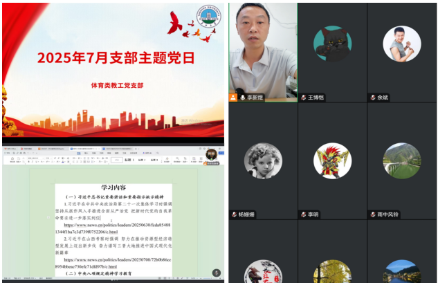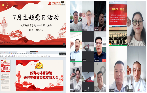 (通讯员 陈佳琳)为持续推动深入贯彻中央八项规定精神学习教育走深走实,进一步强化党员纪律意识和作风建设的自觉性,教育与体育学院各基层党支部通过线上线下相结合的方式开展了七月主题党日活动。活动由各支部书记主持,全体党员参加,通过理论学习、案例警示和实践研讨,推动全面从严治党要求在基层落地生根。