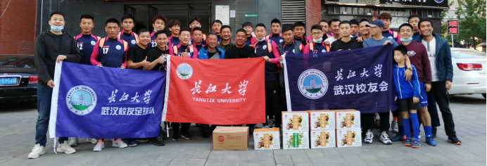 长江大学武汉地区的校友们得知同学们的到来,送来慰问物资,并热情的给同学们加油鼓劲:希望球员在赛场上能够战胜自己,争取胜利,展现长江大学的风采!