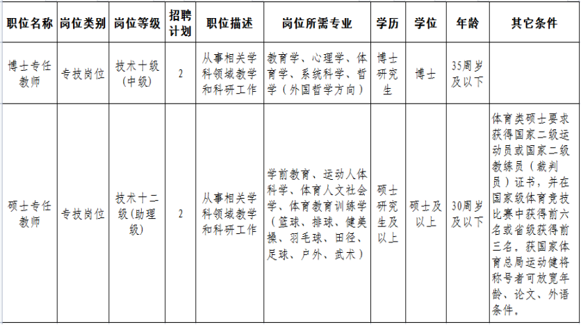 为更好推进学院教学科研事业的发展,特招聘专任教师4名,具体职位名称、所需专业和招聘条件见下表: