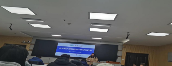 再者是吴敏同学,她以“老年肌少症的运动干预研究进展”做了专题报告。简单介绍了什么是肌少症,以数理统计法、文献资料法等研究方法对老年肌少症的运动防治效果研究、老年肌少症运动防治机制研究、老年肌少症运动防治策略研究进行详细汇报。