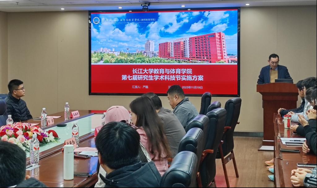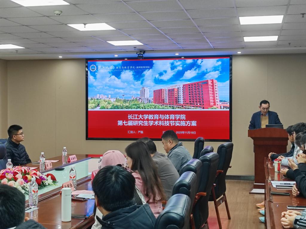 (通讯员:张苑苑)2025年11月20日晚18:00,长江大学教育与体育学院第七届研究生学术科技节在文科大楼905报告厅隆重开幕。出席开幕式的有研究生院副部长黄龙,教育与体育学院院长张艳红,党委书记于永伟,院长助理严磊,以及导师代表王丛兴、杨雪、孔祥魁、薛凌和徐发秀老师。开幕式由学院党委书记于永伟主持,参加对象为教育与体育学院2024级、2025级研究生。