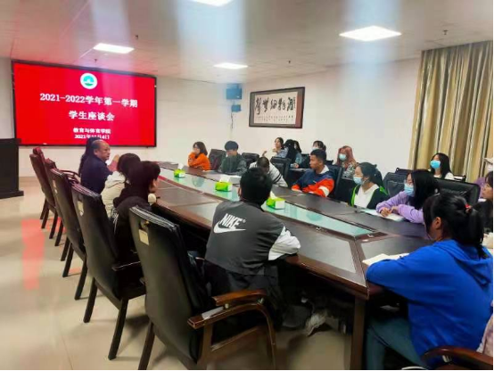 (通讯员 刘志远)为了进一步提高学院教学质量,促进学风建设,我院于11月4日晚18:30在文科大楼905会议室召开了2021-2022学年第一学期学生座谈会。书记高明成、副院长张艳红、教学办主任刘静及各专业各年级学生代表参加本次座谈会。广泛听取学生意见和建议,会议由张艳红副院长主持。