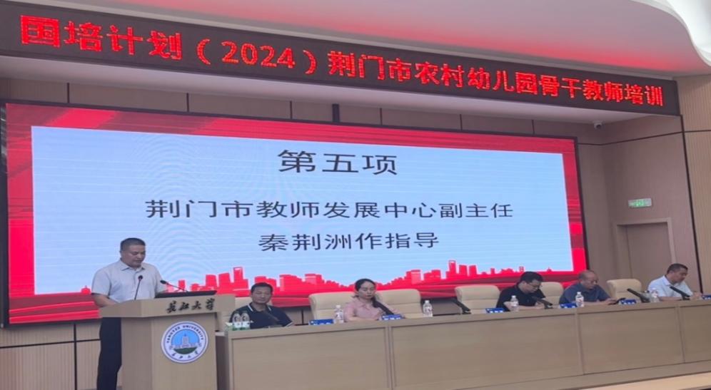 7月22日下午,2024年荆门市农村幼儿园骨干教师培训项目开班仪式在长江大学11教学术报告厅正式启动。仪式由长江大学教师教育学院副院长杜光友主持,与会人员有长江大学教师教育学院院长张艳红、长江大学社会合作处副处长邵四海、荆门市教师发展中心副主任秦荆洲、荆门市教师发展中心副主任杨喆、荆门市教师发展中心教师培训科科长雷发家、长江大学教师教育学院学术班主任徐发秀副教授、教师教育学院办公室主任柯玉清及60名荆门市农村幼儿园骨干教师。