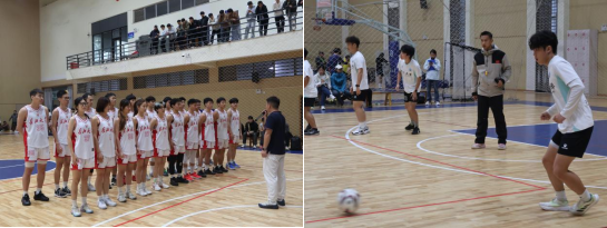 理论报告结束后,全体师生前往南苑体育馆,现场观摩了“足球二过一”片段教学、基于比赛情境的篮球课(水平四)实践展示活动。在最后的讨论与交流环节,授课教师详细解析了教学各环节的设计理由与实施方法,部分师生分享了观摩学习心得。